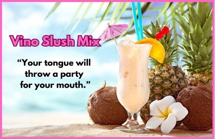 See how wineries and vineyards across the country serve refreshing frozen wine drinks with Vino Slush Mix. Our trusted wine slush mix has been a favorite in tasting rooms and retail shops for years. Fantastic taste! Very profitable.