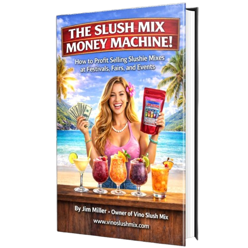Over the years I have received countless inquiries about how people can become dealers and sell my Vino Slush and Bourbon Slush mixes. That inspired me to write a comprehensive business guide. Dealers buy the mixes from me at wholesale prices and sell them at retail prices at all kinds of high-traffic events – festivals, craft shows, farmer’s markets and many other kinds of shows.